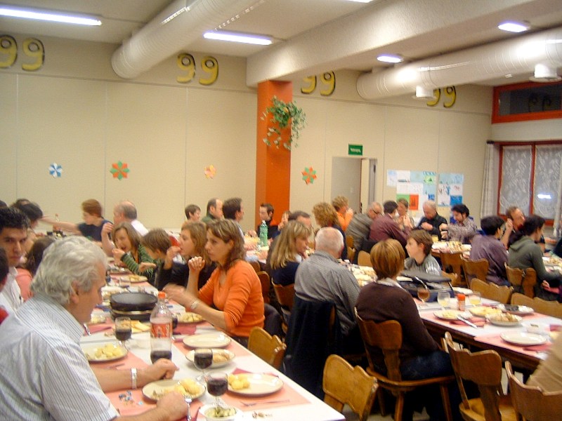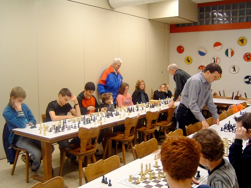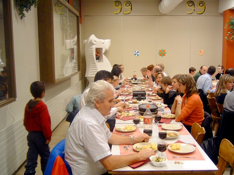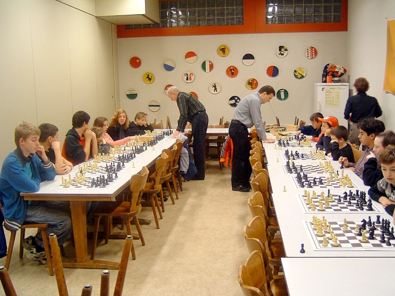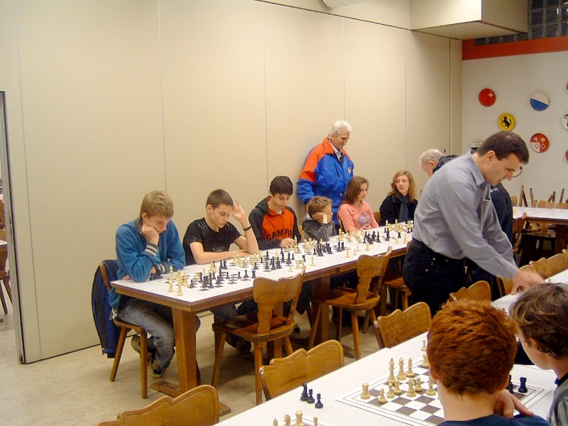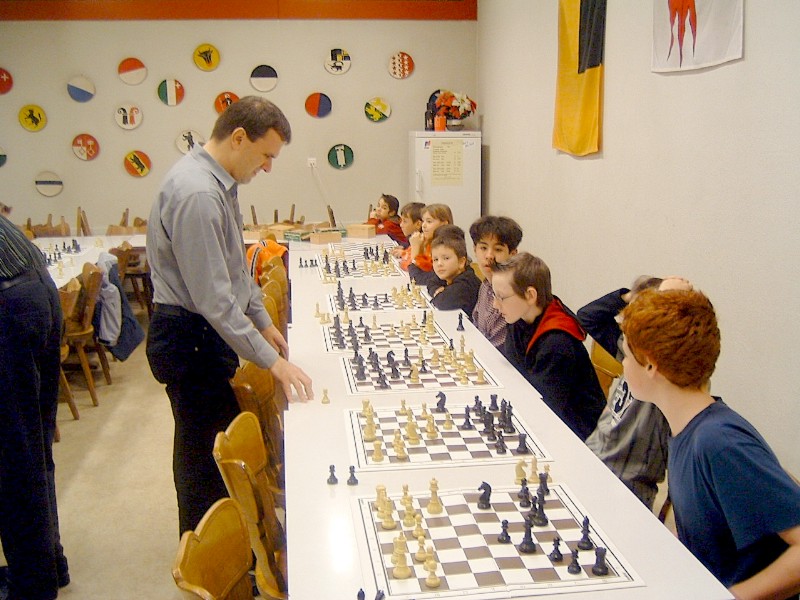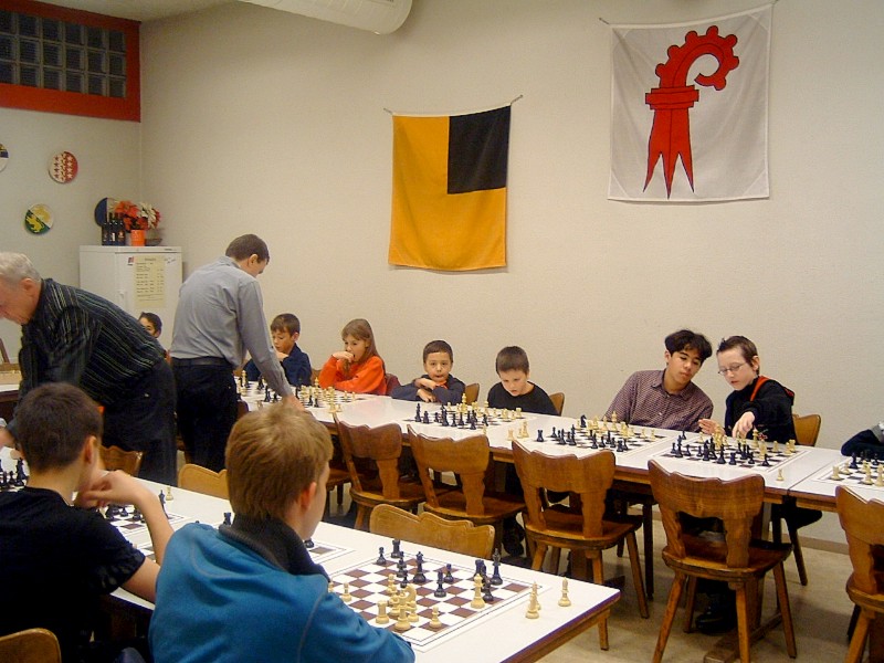 22 Kinder und 38 Erwachsene folgten der Einladung zum Raclette-Abend, welcher in diesem Jahr unter dem Motto stand: - "120 Jahre Gerhard & Guido" -. Beide feiern in diesem Jahr einen runden Geburtstag, Gerhard wurde 70 und Guido 50 Jahre jung. Neben der nicht zu unterschätzenden Organisation, übernahmen die beiden sämtliche Unkosten. Ab 16:00 Uhr wurde der Saal von Gerhard, Guido und Peter eingerichtet. Beatrice, Susi und Hedy kümmerten sich ums kochen von Kartoffeln, schneiden von Käse und Dekoration usw. Um 17.45 Uhr kamen die Schüler und Schülerinnen zum Training bis 19:00 Uhr. Auf dem Programm stand "Simultan". Spontan stellen sich Gerhard und Guido für eine Simultan mit je 7 Spieler und Spielerinnen zu Verfügung. Gerhard gewann relativ schnell alle 7 Partien. Mehr gefordert wurde Guido, trotzdem konnte er 6 Partien gewinnen und zur grosser Freude von Allessandro Laegeler nahm er bei ausgeglichener Stellung das Remisangebot an. Was den Jugendschachleiter 2.50 Fr. kostete. Nach dem Apéro um 19:00 Uhr ging man zum Raclette-Essen über. Da hatte ich (Peter) als Verwalter vom Treff 99 mit Sicherungsprobleme zu kämpfen. Der Sicherungskasten war wegen den vielen Raclette-Ofens völlig überlastet. Nach 6 Auswechslungen beruhigte sich die Lage. Der anschliessenden 50 Fragen Wettbewerb brachte noch einmal Stimmung unter den anwesenden Kinder. Auf dem Gabentisch waren schöne Preise zu gewinnen. Dies motivierte auch die Eltern ihren Kinder zu helfen die Fragen zu lösen. Familie Matovic löste den Wettbewerb als einzige mit 0 Fehler, Bravo. Mit Kaffee und Kuchen wurde der schöne Abend abgeschlossen. Erfreulicherweise packten doch einige Mitglieder beim Aufräumen vom Treff99 kräftig an. Vielen Dank an Gerhard und Guido so wie allen Helfern. Der Abend war ein voller Erfolg!